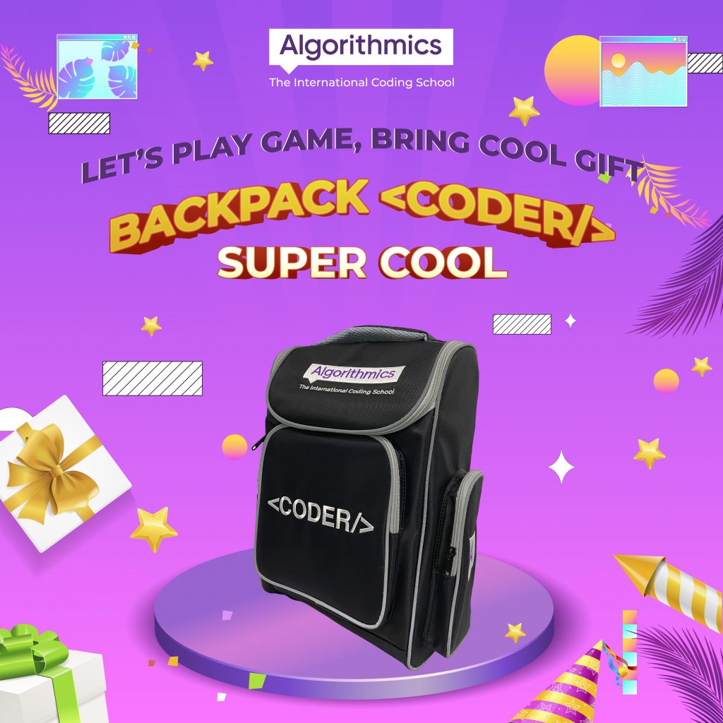 This October, Algorithmics will release a mini-game that with a special gift: <CODER/> backpack! Let’s join a minigame on Fanpage Algorithmics Vietnam and win a super cool backpack!